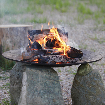 Чаша выполнена из толстостенного чугуна - большая толщина стенок обеспечивает надежность и долговечность и, как следствие, много приятных эмоций вокруг костра. Чаша без подставки. Чашу можно поставить как на булыжники, кирпичи так и на специально подготовленное для костровища основание. И в том и в другом случае, она будет эффектно смотреться на вашей даче! В основании чаши проделаны специальные отверстия для слива дождевой воды.