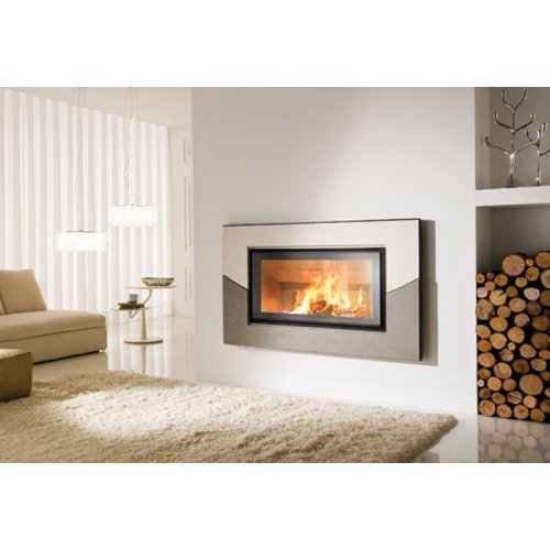 Итальянские дизайнеры разделили облицовку этого встроенного камина Smile надвое. Нижняя ее часть выполнена из натурального камня темного оттенка, тогда как верхняя, отделана темным и довольно контрастным материалом. В подобном обрамлении Ваш домашний очаг будет не только согревать Вас своим теплом, но и радовать всех окружающих своим дизайном.