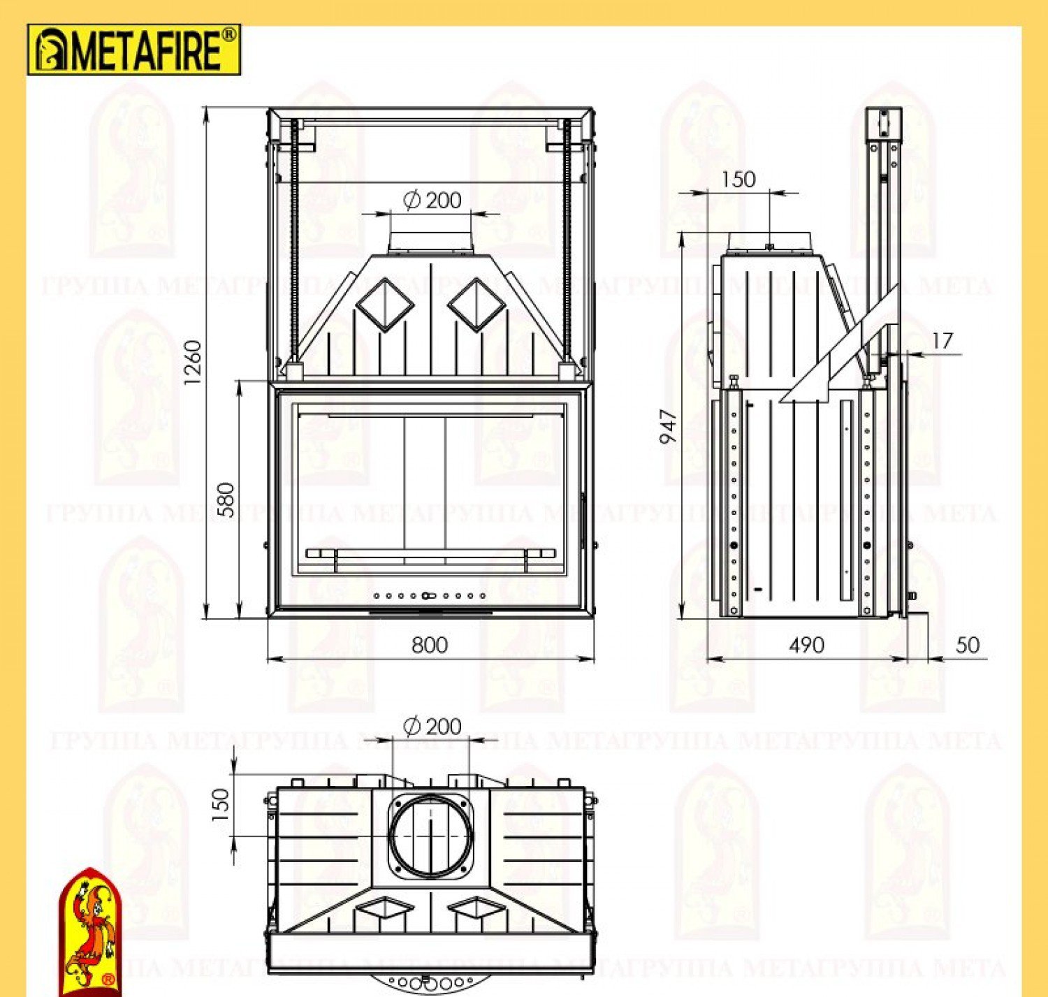 Каминная топка Мета эльба 800п