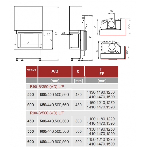 Каминная топка Kobok Corner 720 VD R90-S/380 L/P