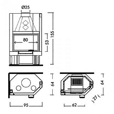 Дровяная топка со сквозным стеклом, через которые открывается потрясающий вид на огонь с двух противоположных сторон.