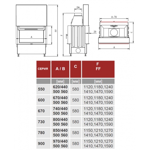 - Диаметр дымохода 200 мм