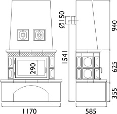 Для облицовки печи применяется печной кафель, который является наилучшем накопителем тепла, он быстро нагревается и очень долго остывает. Поэтому после прогорания дров Ваш дом будет обогреваться за счет отдаваемого тепла облицовки еще на протяжение 5–6 часов. За час печь в номинальном режиме расходует 3,2 кг сухих дров.