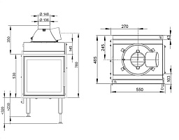 Каминная топка с дымосборником. Стекло слева. Цвет - серый.