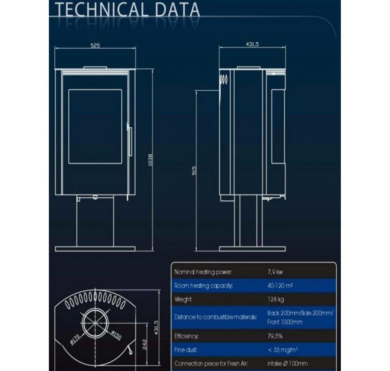 - Диаметр дымохода, (мм) 150 мм.