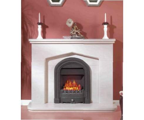 Безукоризненное исполнение этого камина восхищает. Эта модель выполнена из белого мрамора и украшена изящной нишей.