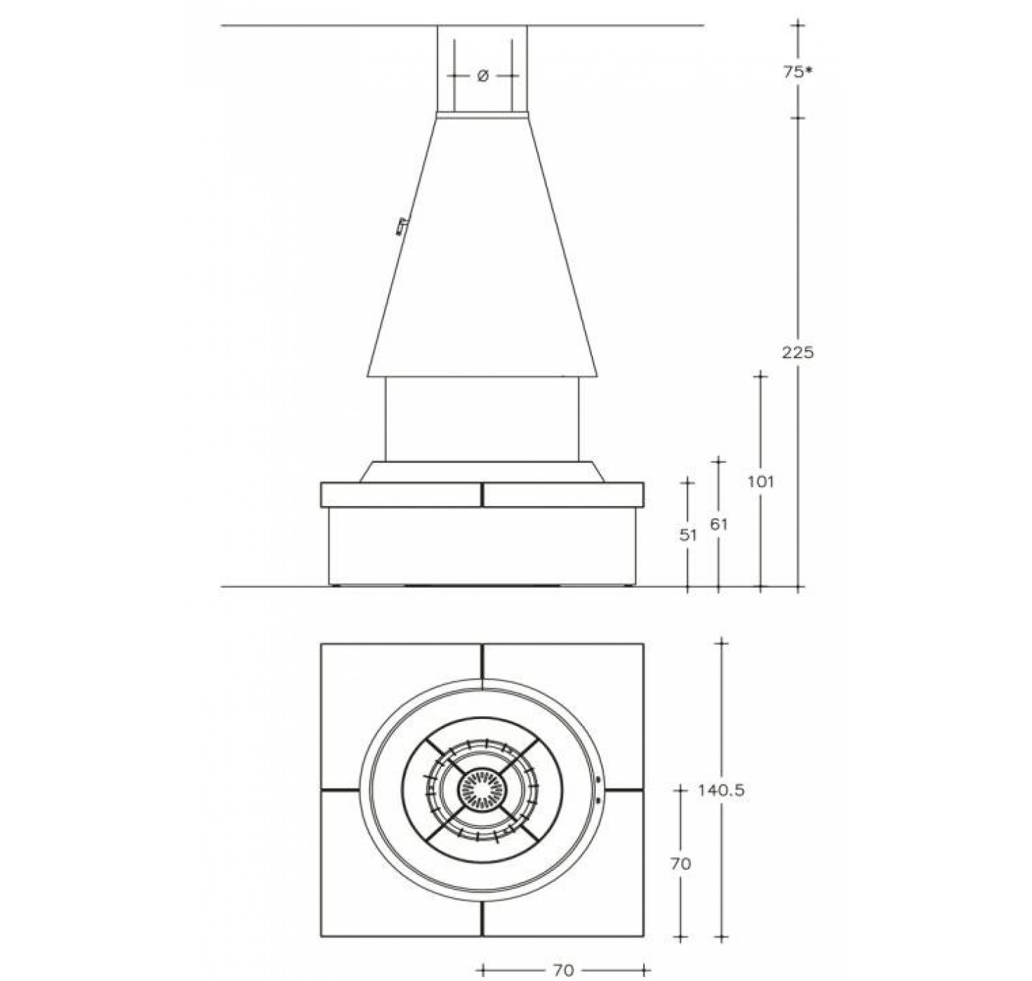 Основание сделано из панелей толстой майолики и окрашенной стали. Майолика ручной отделки, может быть заказана в вашем любимом цвете, выбранным из палитры Piazzetta. Очаг камина сделан из жаропрочного материала, кожух и основание из окрашенной стали. Камин оснащен эксклюзивным электронным механизмом подъема/спуска переднего круглого стекла. Камин совместим с топками M360 T (цилиндрический или конический кожух).