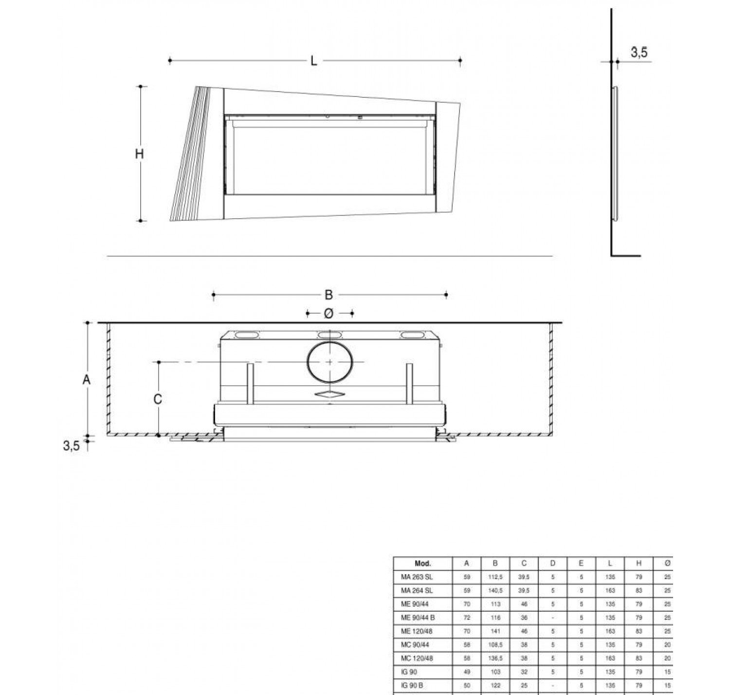 На фото представлена модель в цвете Grigio Cerato с дровяной топкой ME 120/48.