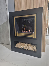 • Встраиваемый камин стоит заказать и купить, если вы готовы приложить больше усилий. Его можно встроить в пол, в стену, даже в стол. Цена зависит от комплектации и габаритов.